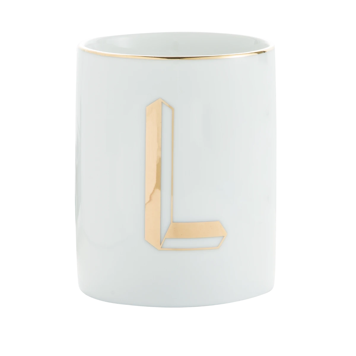 Bicchiere lettera L in porcellana decalco oro – Adatto per lavastoviglie Max 250 lavaggi – Non adatto per microonde