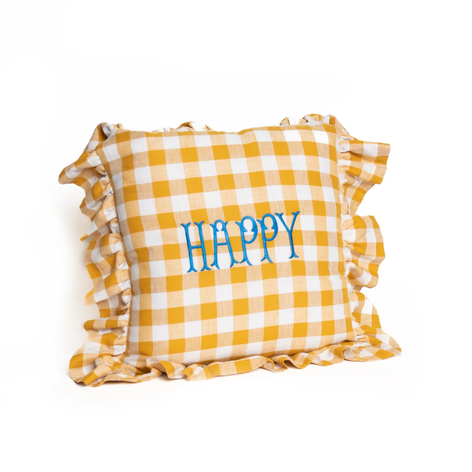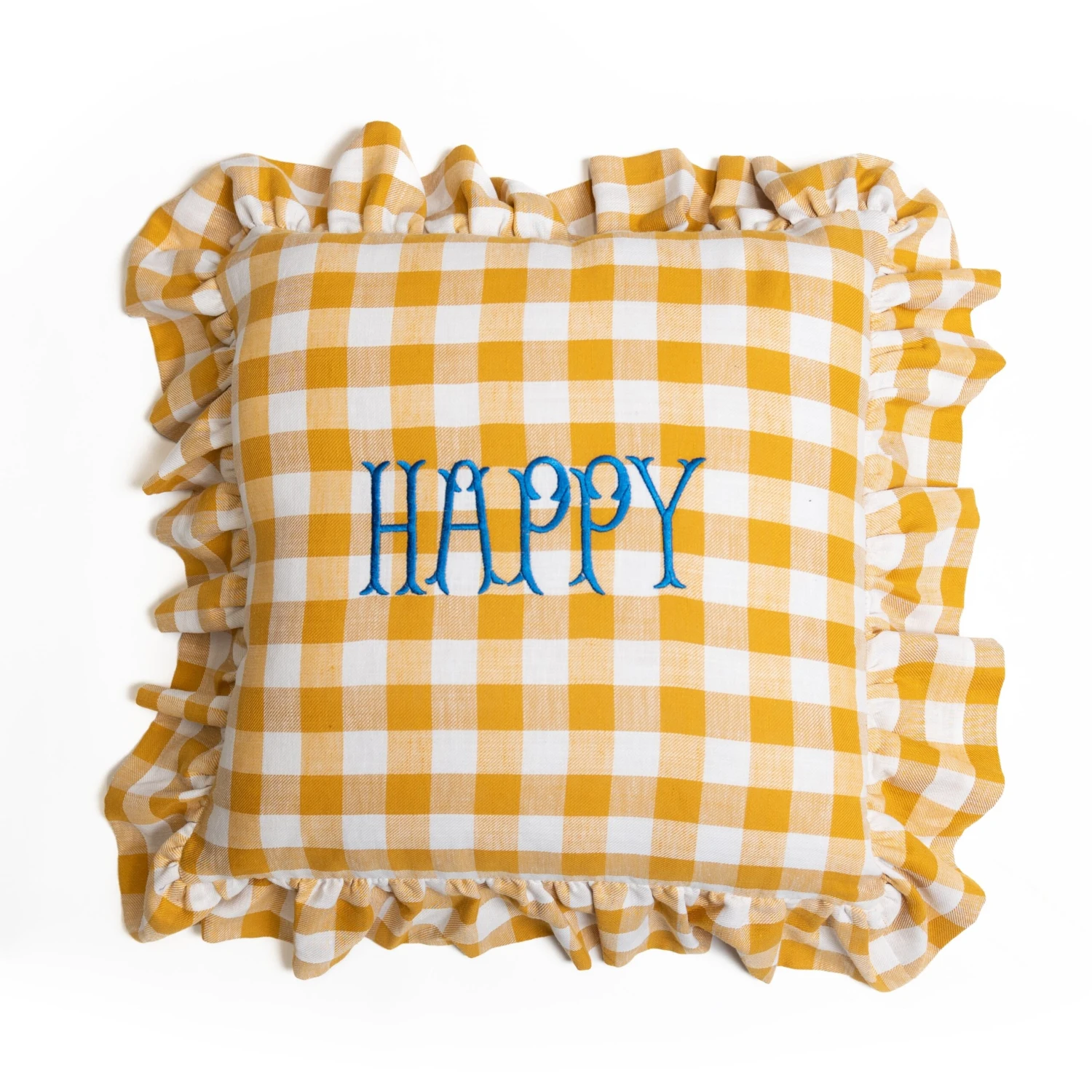Copricuscino soggetto Happy – 100% Cotone – Lavabile in Lavatrice Max 60°