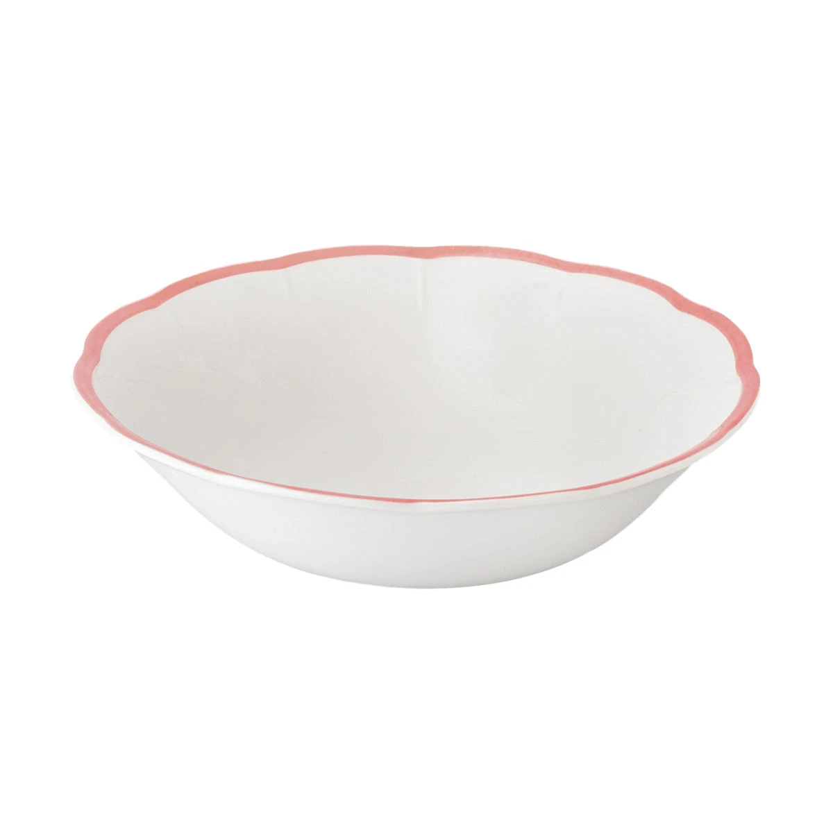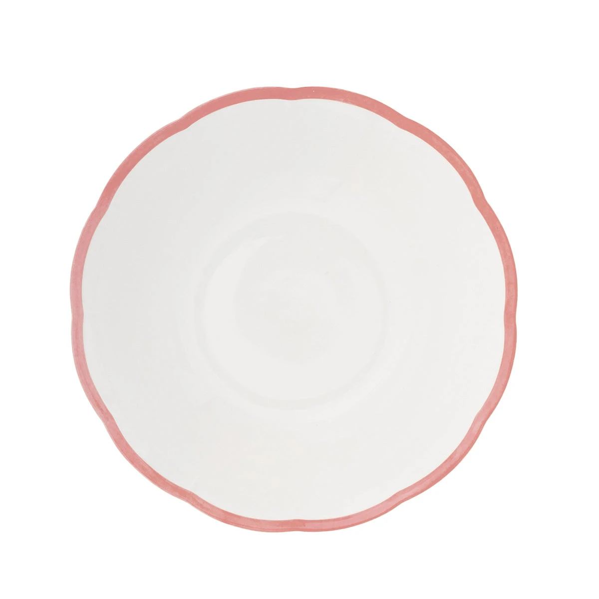 Insalatiera ironstone bianca con bordo rosa – Adatto per lavastoviglie – adatto per microonde