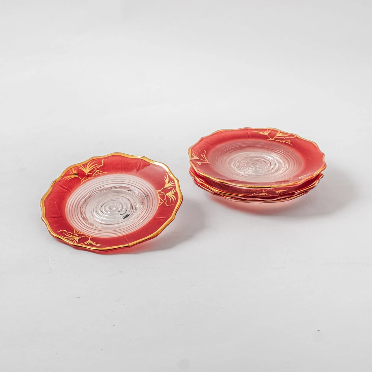 Set da 4 piattini rossi in vetro stile Cina con bordo oro