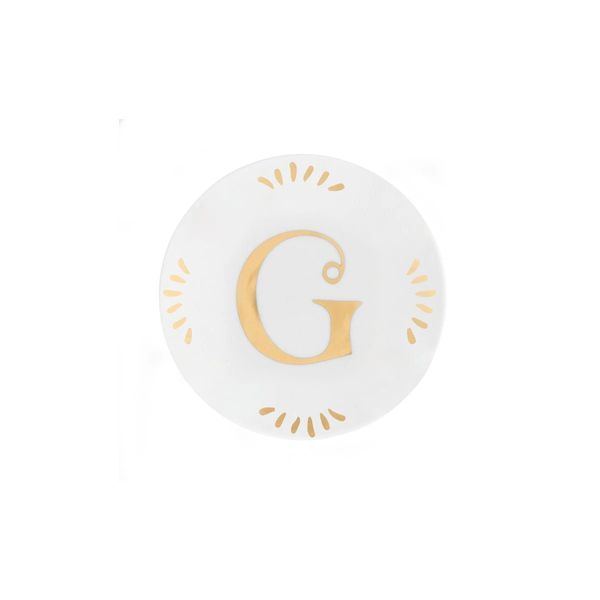 Piattino lettera G in porcellana decalco oro – Adatto per lavastoviglie Max 250 lavaggi – Non adatto per microonde