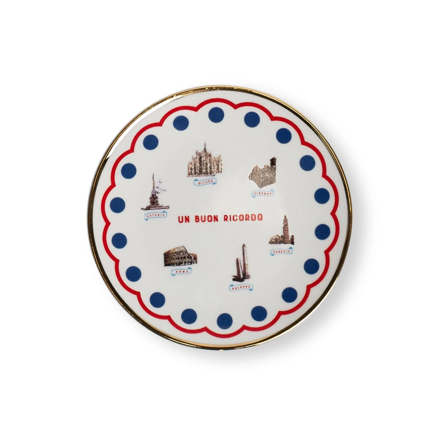 Piattino porcellana decalco bordo oro – Adatto per lavastoviglie Max 250 lavaggi · Non adatto per microonde