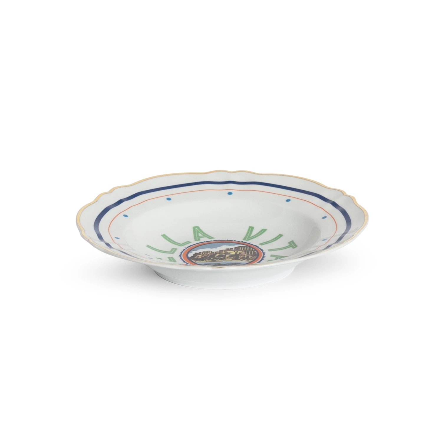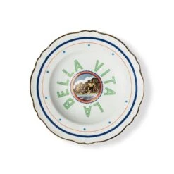 Piatto porcellana decalco bordo oro – Adatto per lavastoviglie Max 250 lavaggi · Non adatto per microonde