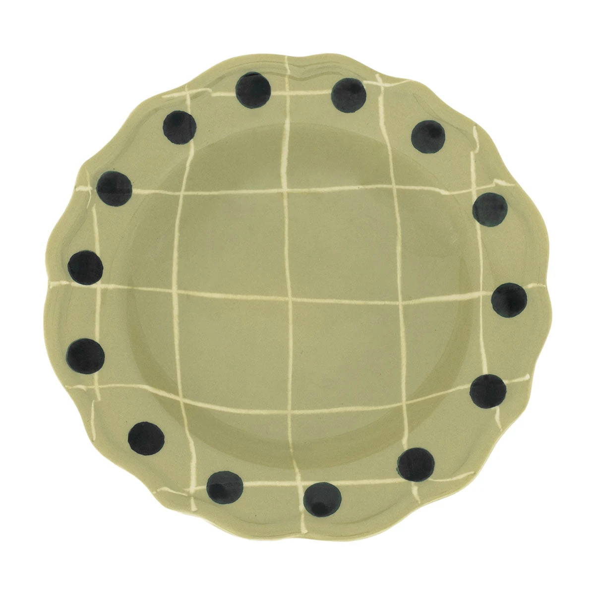 Piatto in ceramica verde con bordo a pois verde – Adatto per lavastoviglie – Adatto per microonde