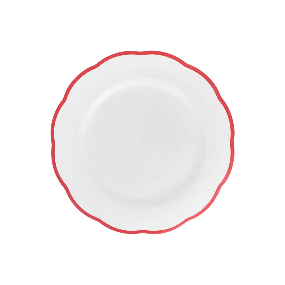 Piatto in ironstone bianco con bordo rosso – Adatto per lavastoviglie – adatto per microonde
