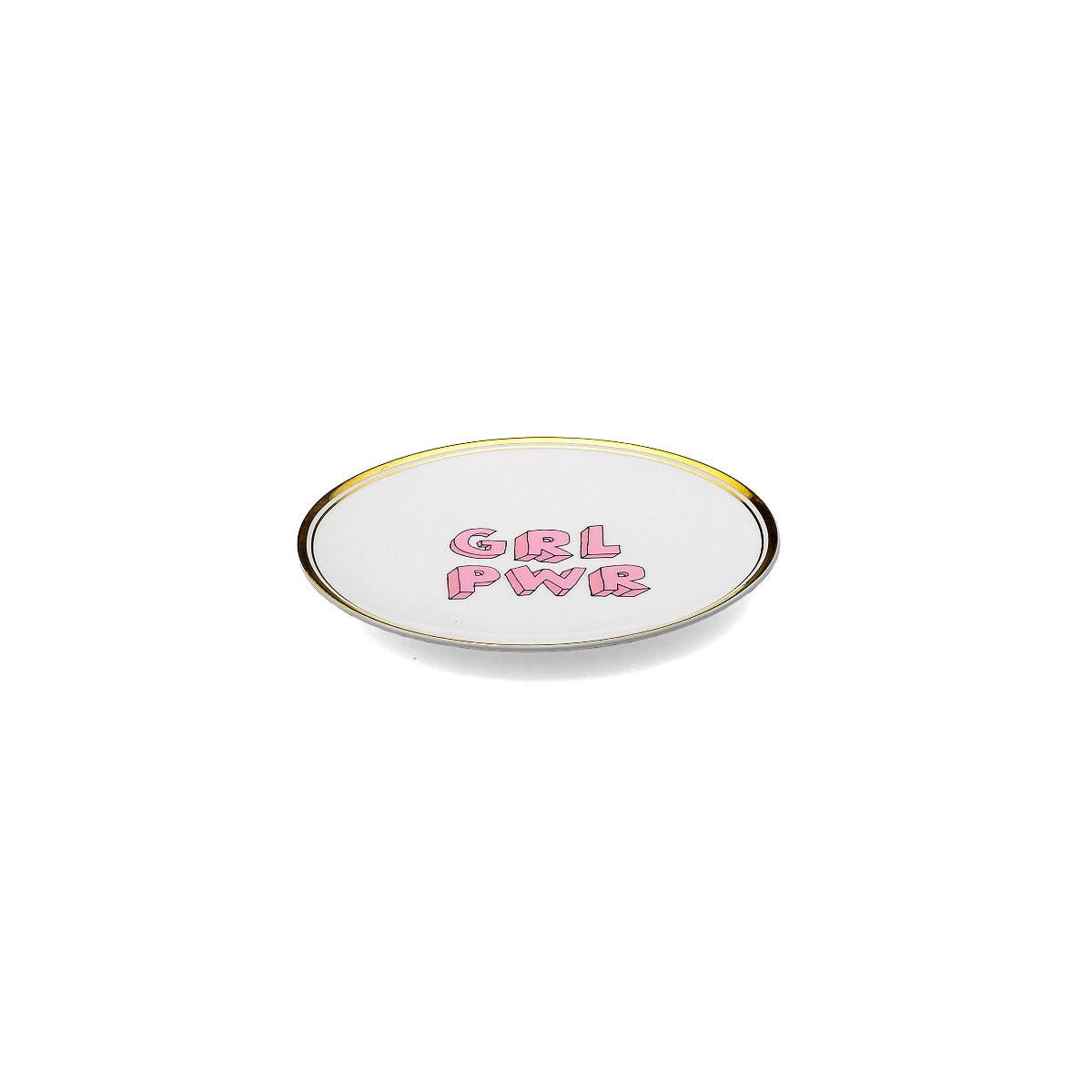 Piatto Grl Pwr in porcellana decalco bordo oro – Adatto per lavastoviglie Max 250 lavaggi – Non adatto per microonde