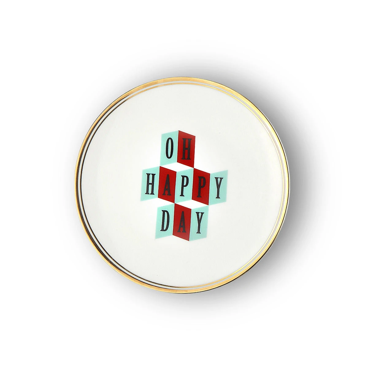 Piatto Oh Happy Day in porcellana decalco bordo oro – Adatto per lavastoviglie Max 250 lavaggi – Non adatto per microonde