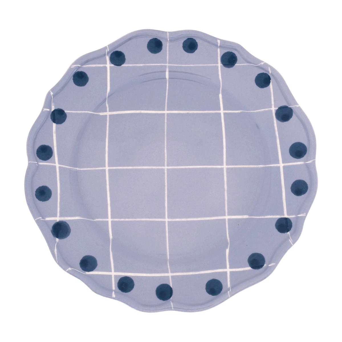 Piatto in ceramica lavanda con bordo pois blu – Adatto per lavastoviglie – Adatto per microonde