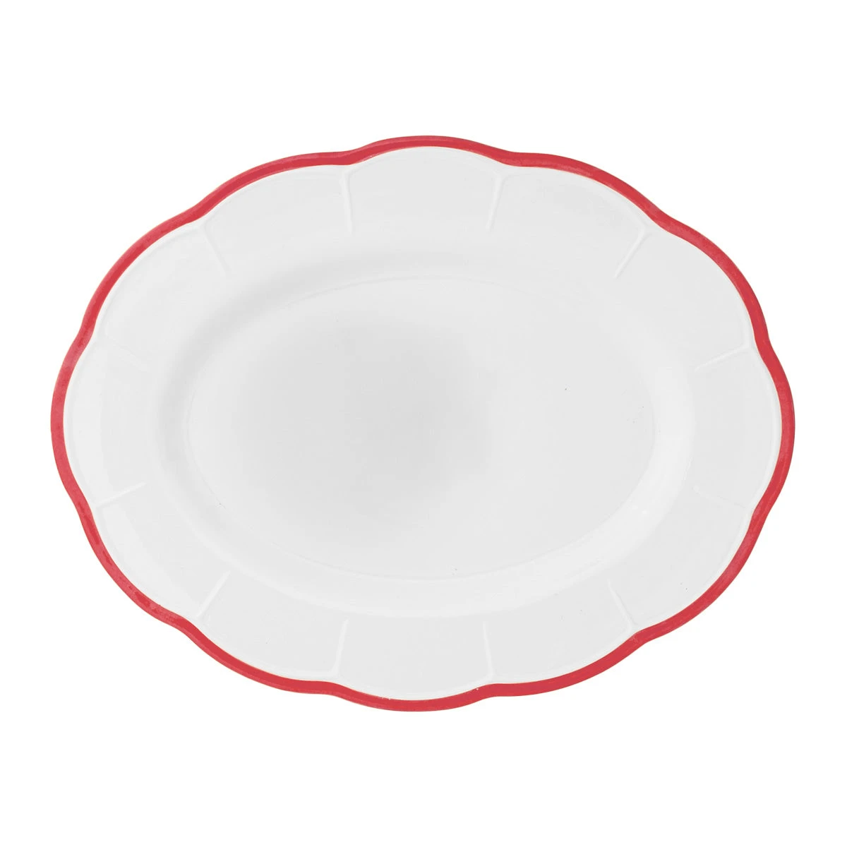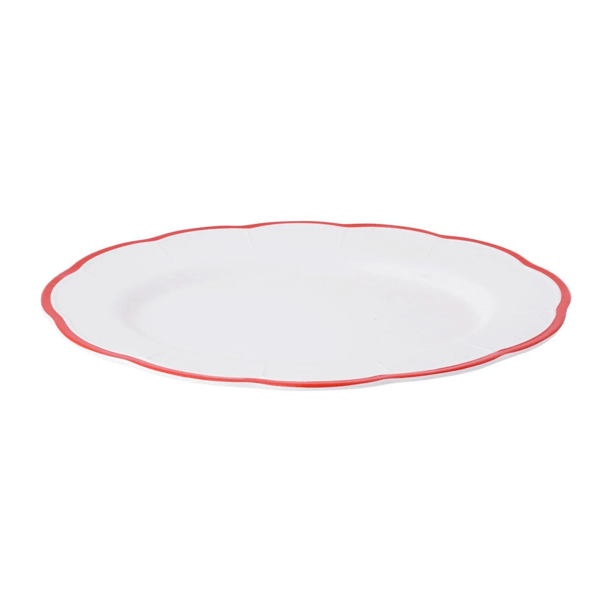 Piatto ironstone bianco con bordo rosso – Adatto per lavastoviglie – adatto per microonde