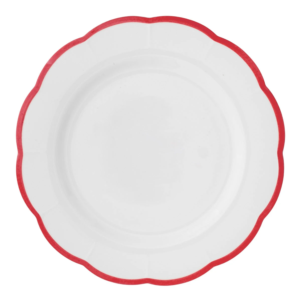 Piatto ironstone bianco con bordo rosso – Adatto per lavastoviglie – adatto per microonde