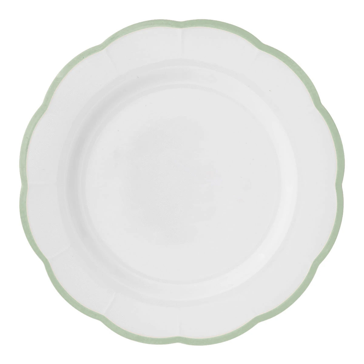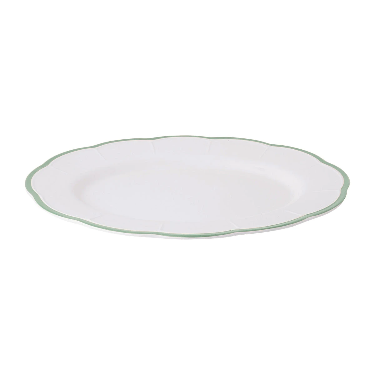 Piatto ironstone bianco con bordo verde – Adatto per lavastoviglie – adatto per microonde