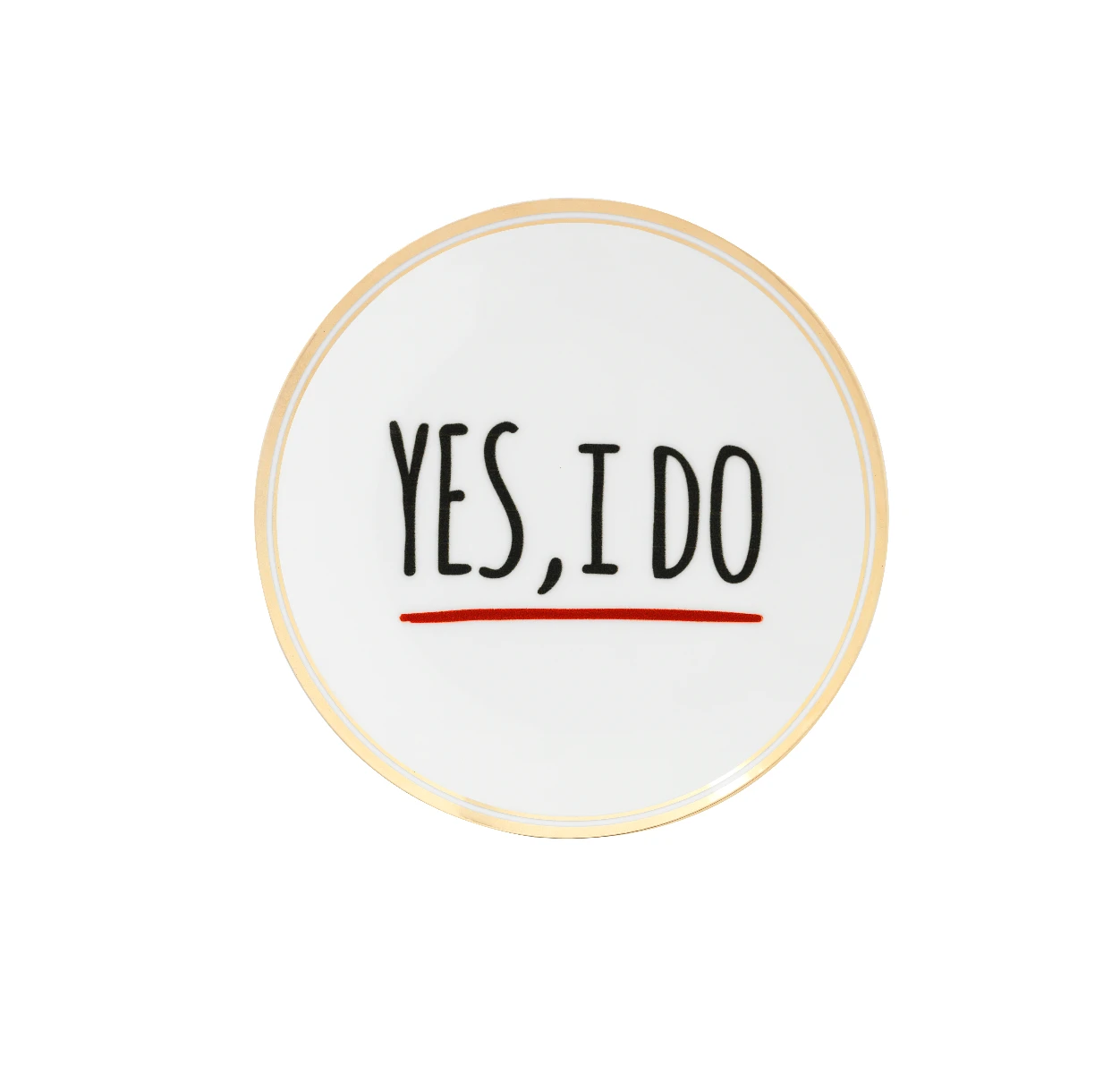 Piatto Yes, I do in porcellana decalco bordo oro – Adatto per lavastoviglie Max 250 lavaggi – Non adatto per microonde