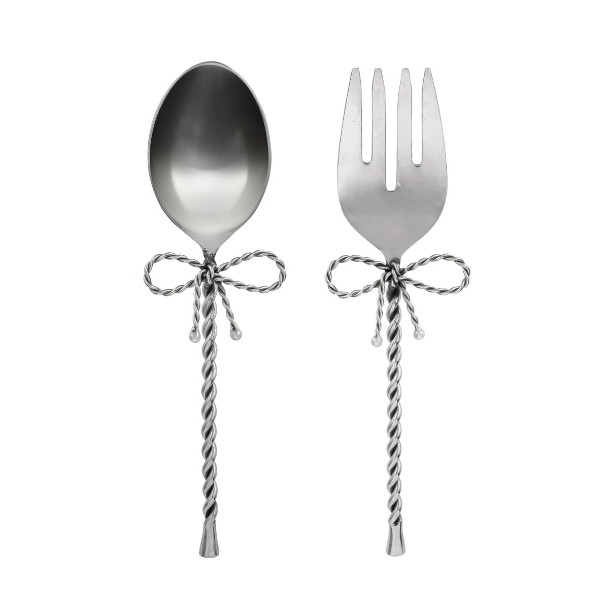 Set 2 Pezzi posate insalata fiocco in acciaio 18/0 – Adatto per lavastoviglie temperatura Max 40° C. – Non usare abrasive e detergenti forti – Non adatto per microonde