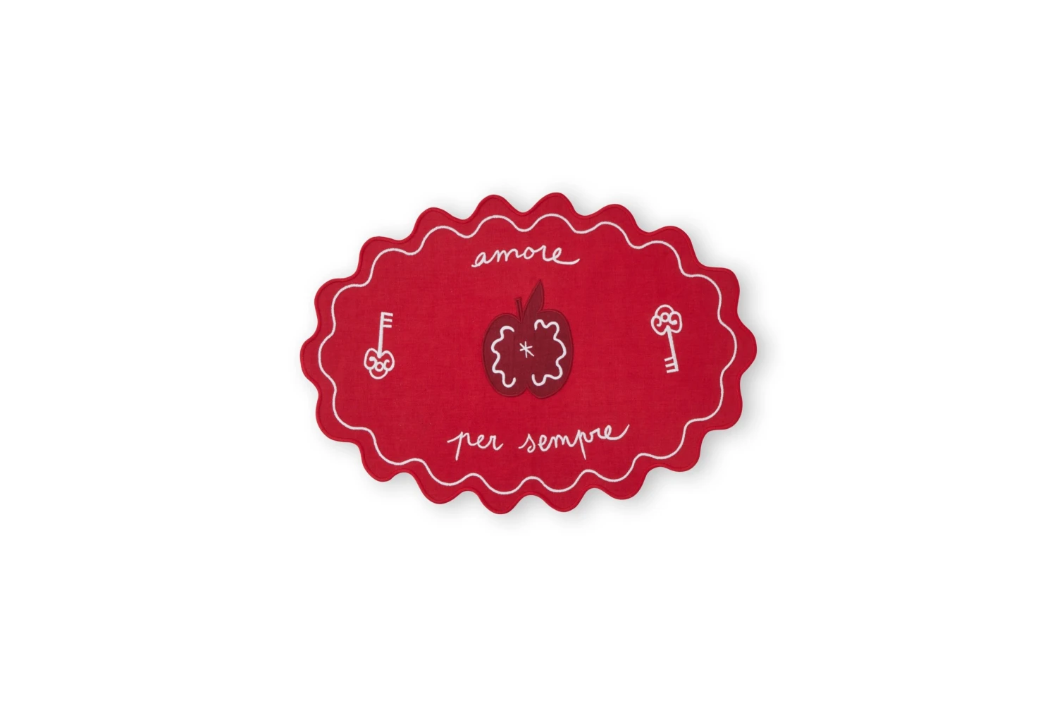 Tovaglietta rossa con ricami – Lavabile a mano – Con trattamento antimacchia – Non adatto al contatto con gli alimenti – Non adatto per lavastoviglie – Non adatto per microonde