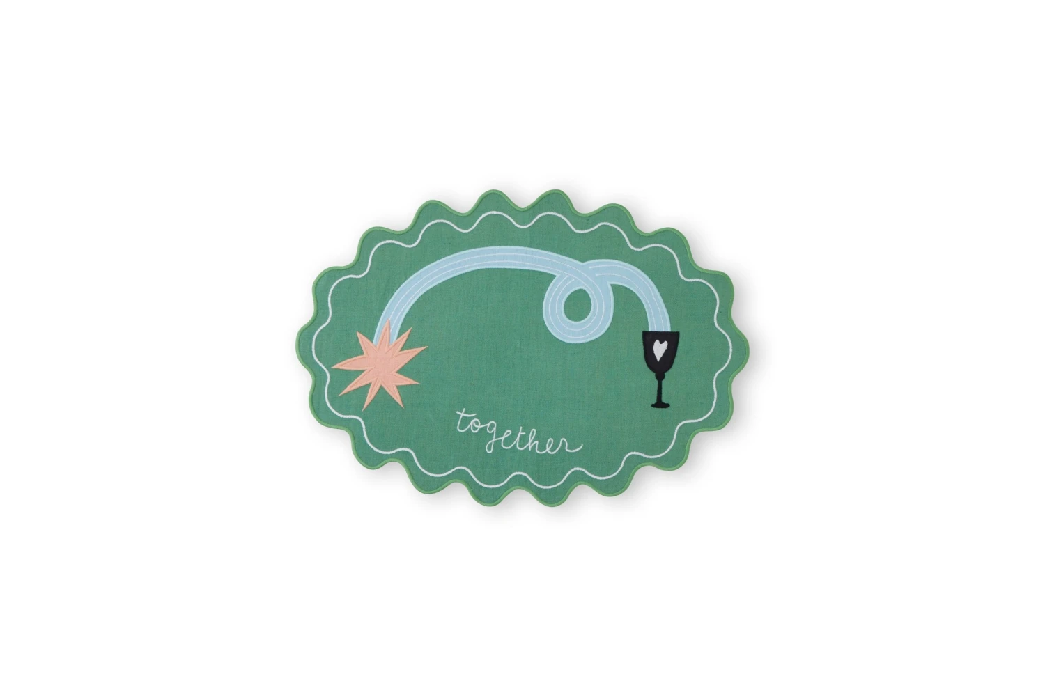 Tovaglietta verde con ricami – Lavabile a mano – Con trattamento antimacchia – Non adatto al contatto con gli alimenti – Non adatto per lavastoviglie – Non adatto per microonde