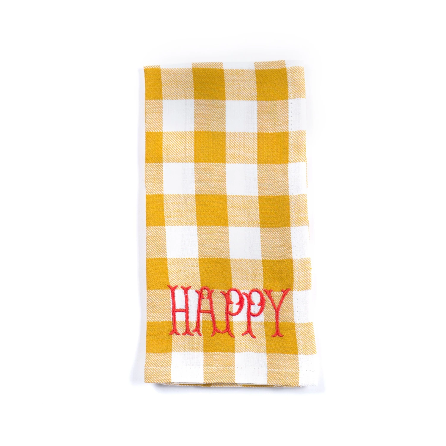 Tovagliolo soggetto Happy – 84% Cotone, 16% Lino – Lavabile in lavatrice Max 60°