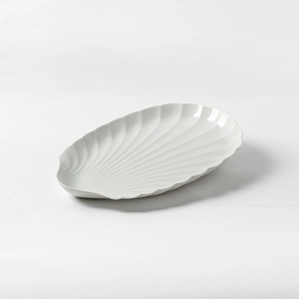Vassoio ovale in ceramica bianca a forma di conchiglia